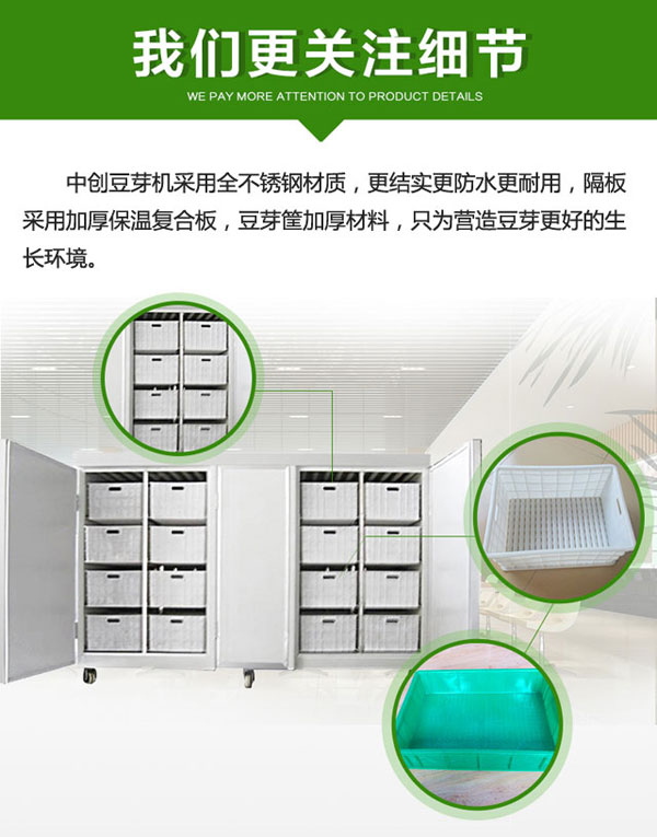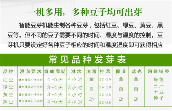 整體真正實現(xiàn)全自動化,能提供豆芽生長的適宜環(huán)境和條件。